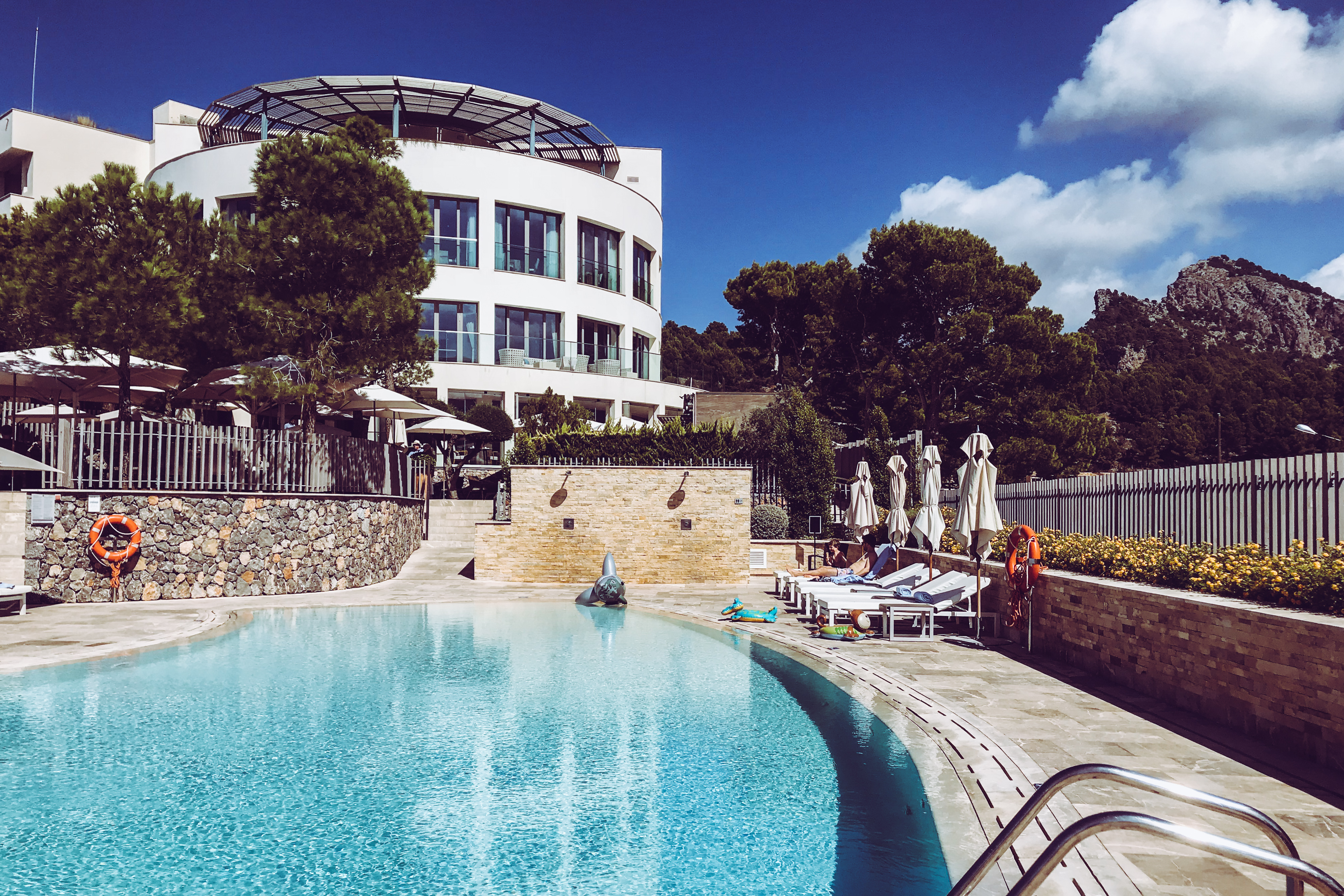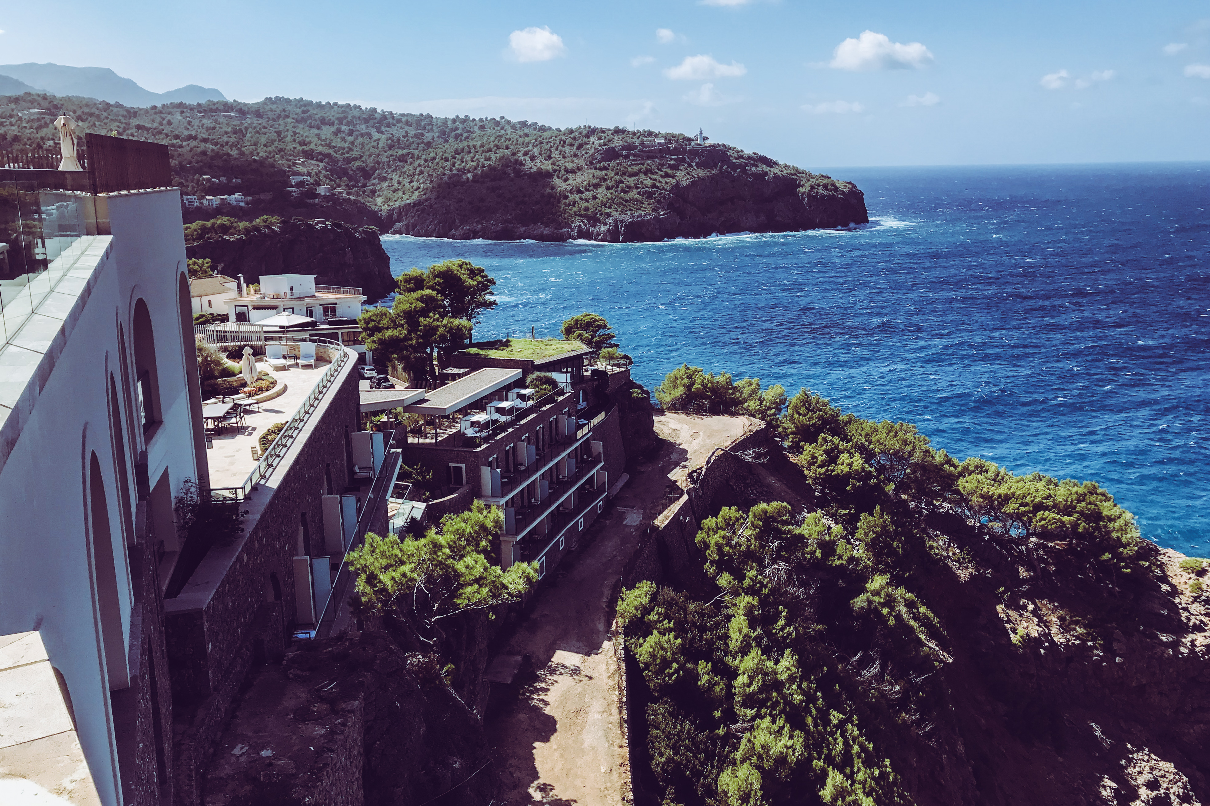 Der Mann und ich waren bereits im Spätsommer auf einer Hochzeit im Nordwesten der Insel und hatten da schon mal die Möglichkeit, die Gegend zu erkunden. Außerdem lag unser Hotel direkt neben dem Jumeirah Port Sóller Hotel & Spa und wir fuhren ein paar Mal daran vorbei. Schon von außen sieht das Hotel wahnsinnig beeindruckend aus, mit seinem großen Turm und die Zimmer, die in den Berg gebaut sind und sich entlang des Hanges schlängeln. Ich wollte unbedingt mal dort drinnen sein und von der Terrasse aufs offene Meer schauen, denn der Blick sollte unglaublich sein, sagte man uns.