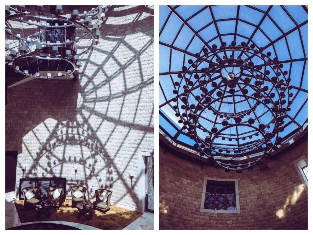 Als wir die Eingangshalle des Jumeirah Port Sóller Hotel & Spa betreten, verstummt selbst die kleine Hasennase kurz, ob der Größe dieses Raumes. Ein riesiger Kronleuchter hängt in der Mitte unter der Decke des lichtdurchfluteten Raumes, umrandet von einer Wendeltreppe.