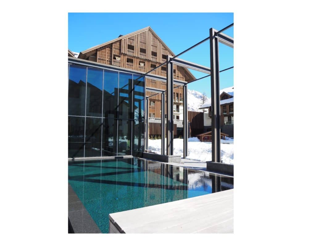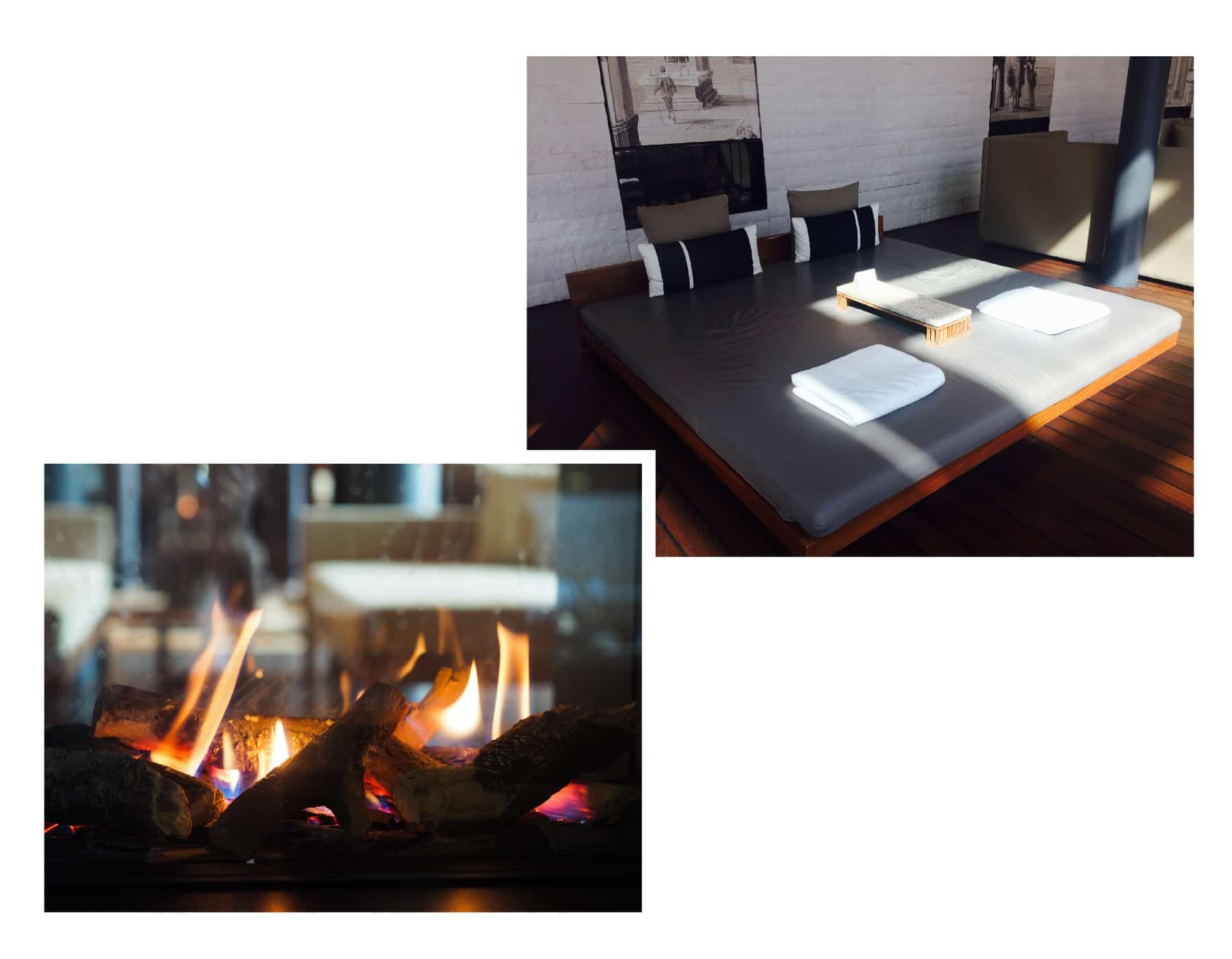 Um die strapazierten Muskeln nach der ungewohnten Anstrengung zu entspannen, gibt es nach der Piste doch nichts Besseres als eine Runde Wellness im The Spa. Der wunderschöne Bereich erstreckt sich über zwei Etagen und der Mittelpunkt des Ganzen ist der 35 Meter lange, mit einem Glasdach bedeckte Indoor Pool auf der oberen Ebene. Der Bereich ist ausgestattet mit Daybeds, Teppichen und großen Sofas auf denen man, während die Feuer in den acht Kaminen knistern, eingekuschelt in die gemütlichen Bademäntel wunderbar bei einem Smoothie relaxen kann. Da der Großteil der Hotelgäste gegen Mittag noch auf dem Gemsstock Ski fährt, ist man wie ich dort so gut wie allein, wie herrlich.