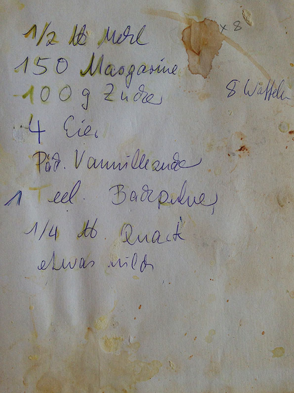 wenn ich einen richtig miesen oder einen besonders tollen Tag hatte, dann backe ich. Wenn es draussen in Strömen regnet, es Sonntag ist und die Supermärkte alle zu haben, dann gibt es Mamas Waffeln denn die Zutaten hat man immer zu Hause. Wie man sieht ist mein Rezept schon ziemlich alt. Meine Mama hat das irgendwann mal in so ein „Oldschool Kochbuch“ geschrieben. Als ich dann in meiner erste eigene Bude gezogen bin, wurde mir dieses Buch festlich überreicht 😉