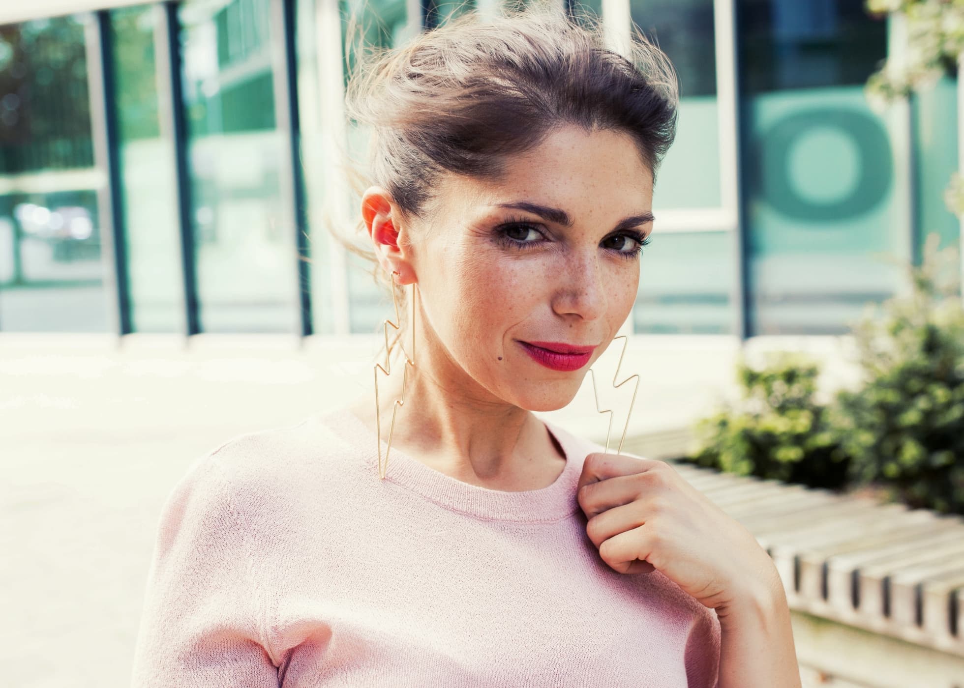Bei der Wahl des Schmucks habe ich mich auf Ohrringe beschränkt – „Reduziert“ ist hier wohl der falsche Begriff! Große Blitze, mit denen man auf jeden Fall überall hängen bleibt, aber naja, da muss man dann wohl durch, denn cool sind sie auf alle Fälle.